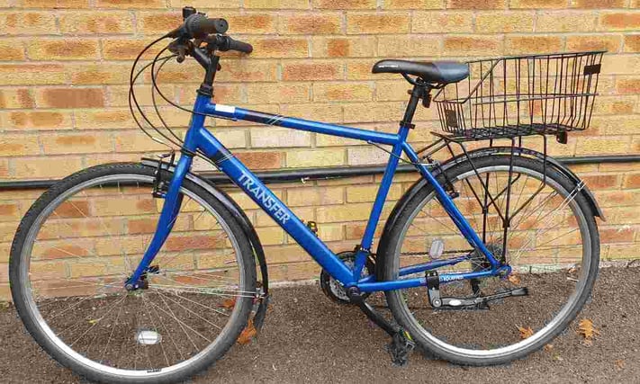 Lightweight Aluminium Apollo Transfer Hybrid bike with rear basket, rear rack carrier, mudguards, kickstand, bell. Wheel size is 28", 18 gears, 19" frame. £120 Email Me
