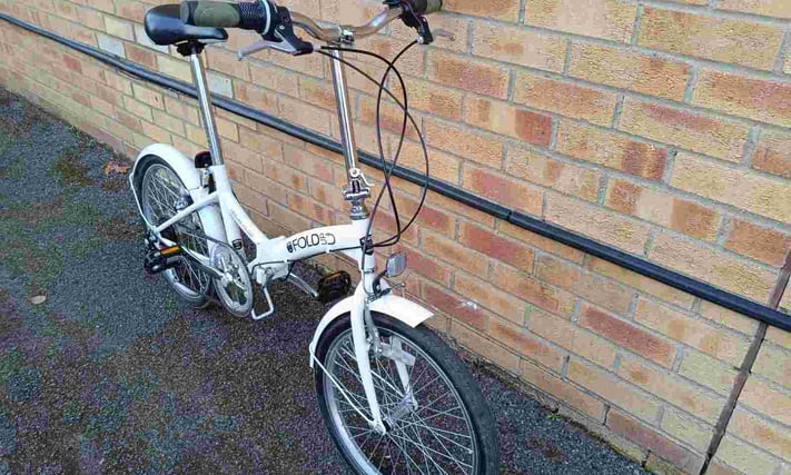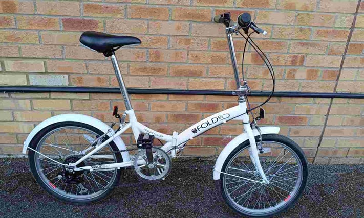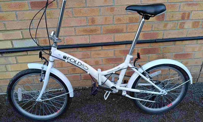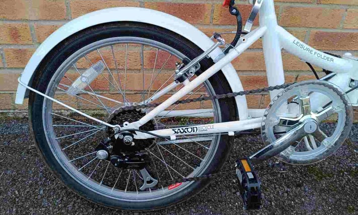 Saxon folding commuter bike with storage/ carry bag in good condition with mudguards, kickstand, reflectors and bell. The wheel size is 20" with good tyres. 6 speed gears. £120 Email Me
