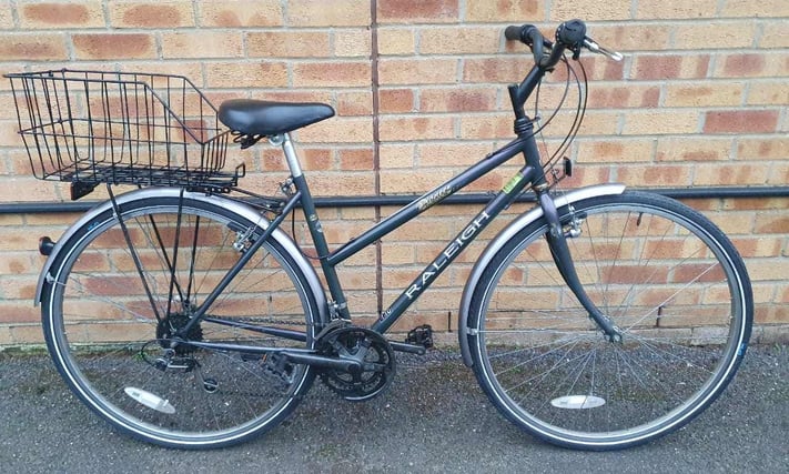 Raleigh Pioneer Jaguar 12 Dual SIS Hybrid bike with new tyres, rear basket, mudguards, rear rack carrier and bell. Wheel size is 28", 12 speed gears, 19" frame. £120 Email Me