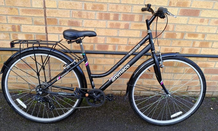 Ammaco Madrid Hybrid Bike in an excellent condition with mudguards, good tyres, rear rack carrier and bell. Frame size is 16", 7 speeds gear, wheel size is 28". £150 Email Me