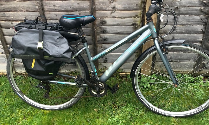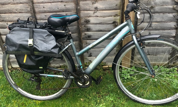 Ladies Apollo City bicycle 18 gear 28 inch wheel 17 inch frame has mudguards rear pannier bags storage and lights £140 in good working condition Email Me