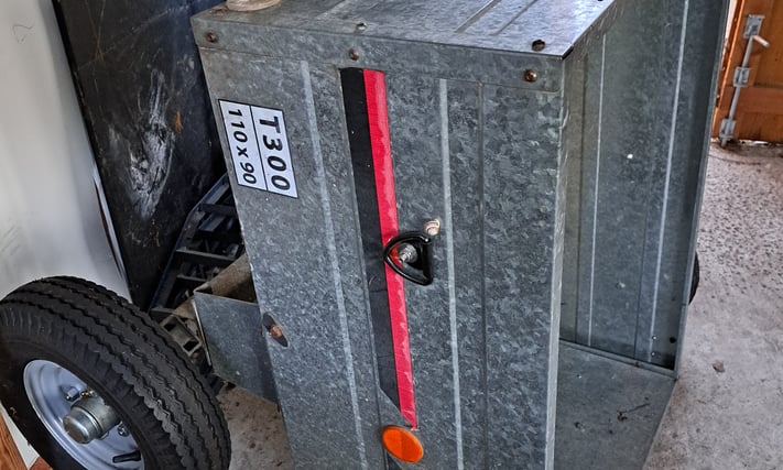 Car trailer T300: 110 x 90cm plus spare wheels. Good condition. Stored indoors. £200 ono. Collect from roadside, East Oxford. Email Me