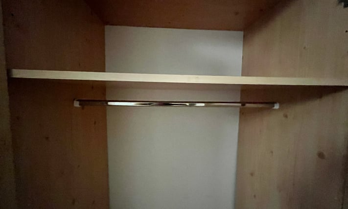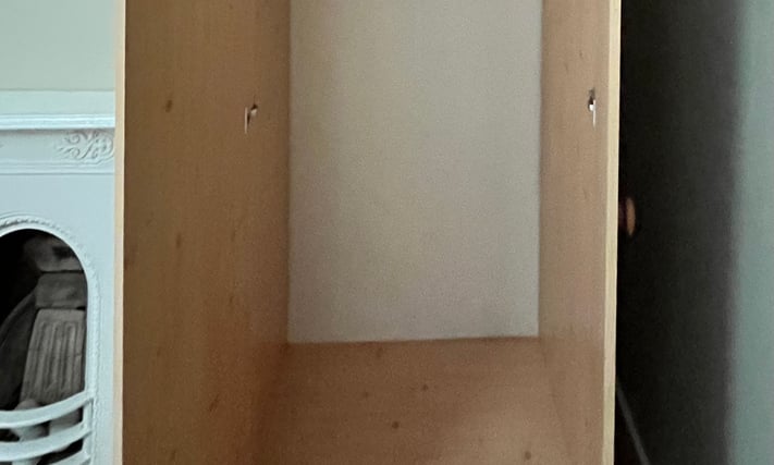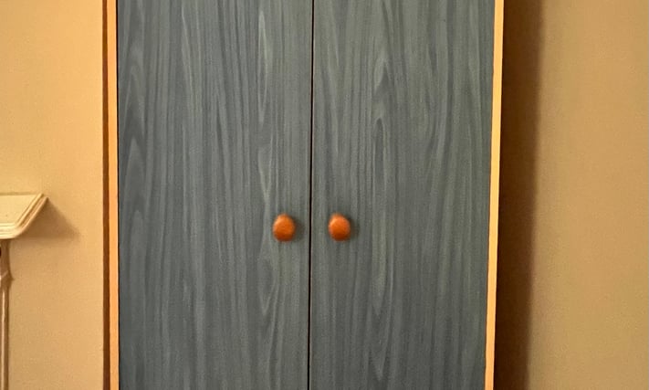 Compact Wardrobe. Wood effect, blue doors, hanging rail, shelf. 181cm(H) x 75cm(W) x 50cm(D) Assembled. Delivery in Oxford for small fee. Andrew 07540 257397 Email Me