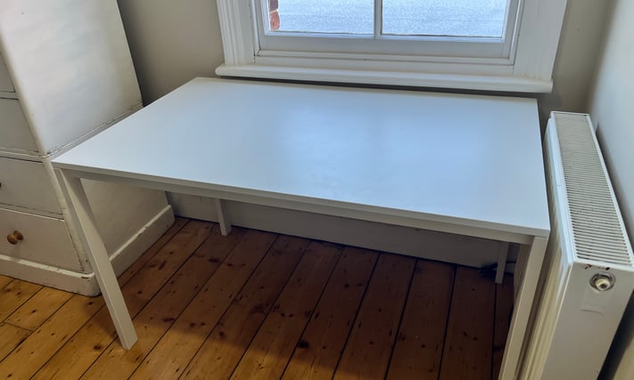 IKEA Meltorp Table, 125cm x 75cm x 74cm H. Metal Legs, Melamine Top Ideal as desk. Excellent condition. Legs detach. Collection Headington. Delivery considered for small fee. Andrew 07540 257397 Email Me