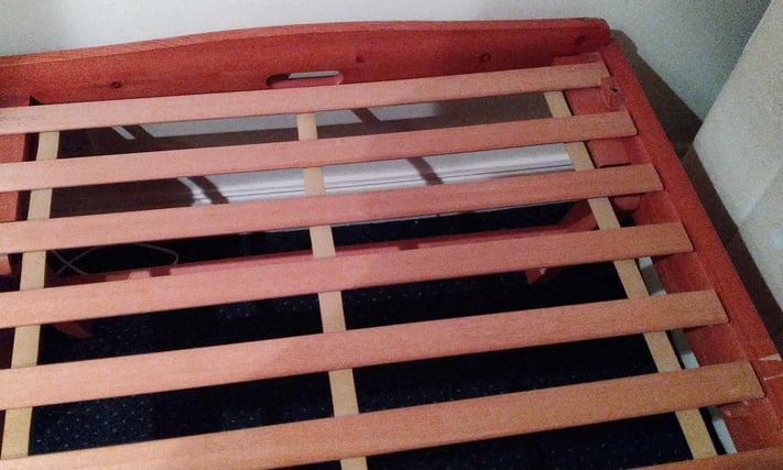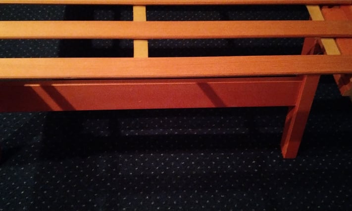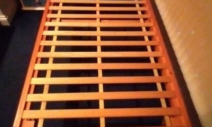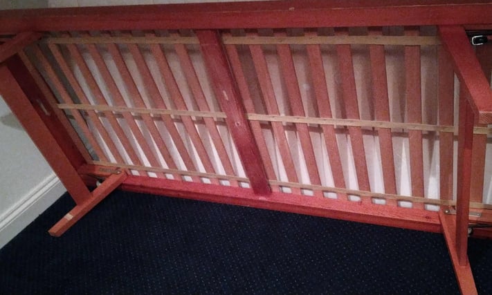 Single pine trundle bed, legs fold down so it can be wheeled underneath another bed when not in use. Good condition, comfortable, mattress included. £25. Delivery possible. Email Me