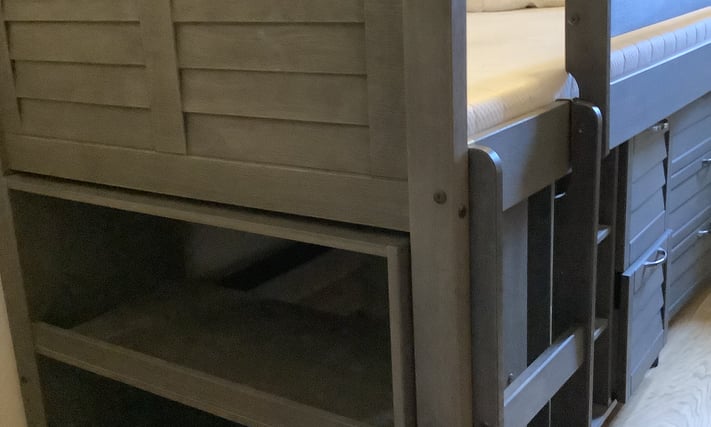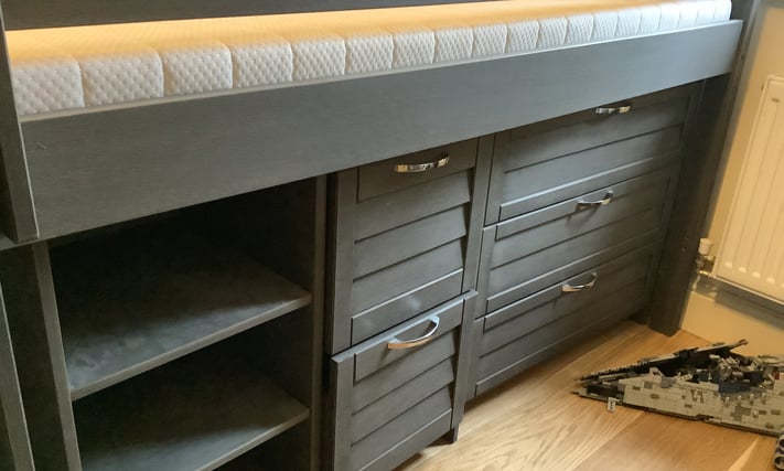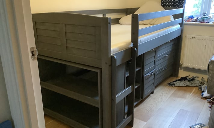 Cabin bed with 2x shelves and 2x drawers and mattress £100. Info on Wayfair - Myron Cabin Bed where it costs £600+. Perfect for small rooms. Collect OX3. Email Me