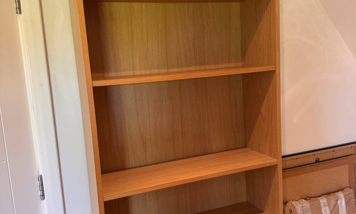 Shelf unit freestanding: IKEA BILLY oak veneer - perfect condition 80cm wide 200cm tall. Email Me