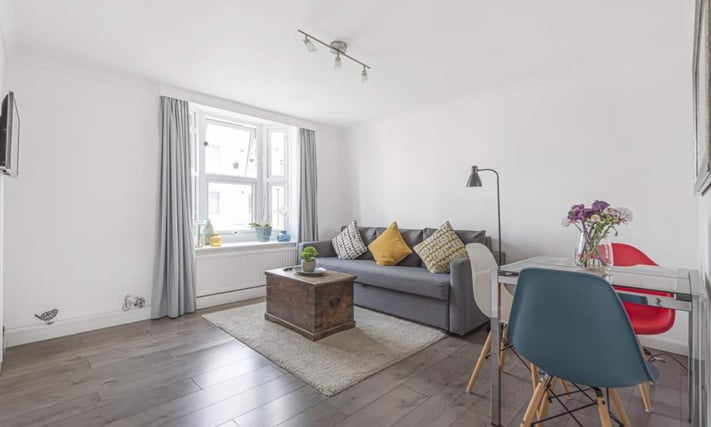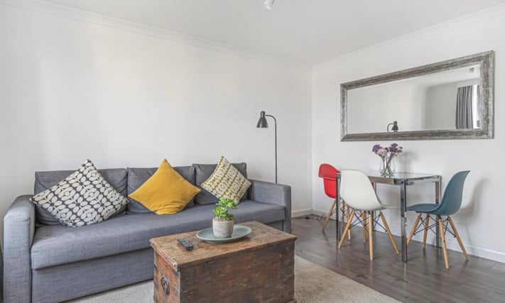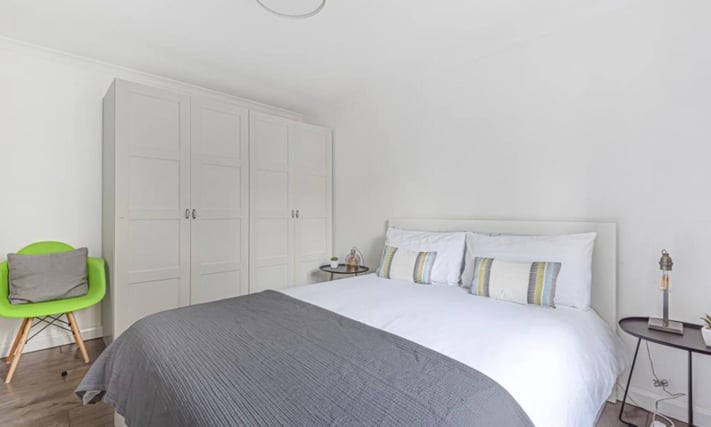 A modern one double bedroom first floor apartment with allocated private parking.Recently refurbished and beautifully equipped with modern conveniences such as oak hardwood floors. The apartment consists of elegant king size bedroom with a comfortable wardrobe, new bathroom (with bath-shower). Lovely kitchen with induction hob, oven and dishwasher, laundry space with washing/drying machine. Spacious living room with a double size sofa bed, TV & fast WIFI.For viewing, please email me. Thanks