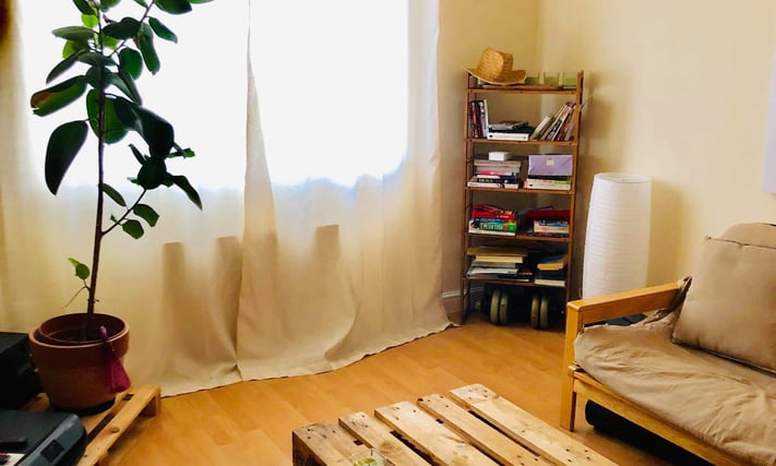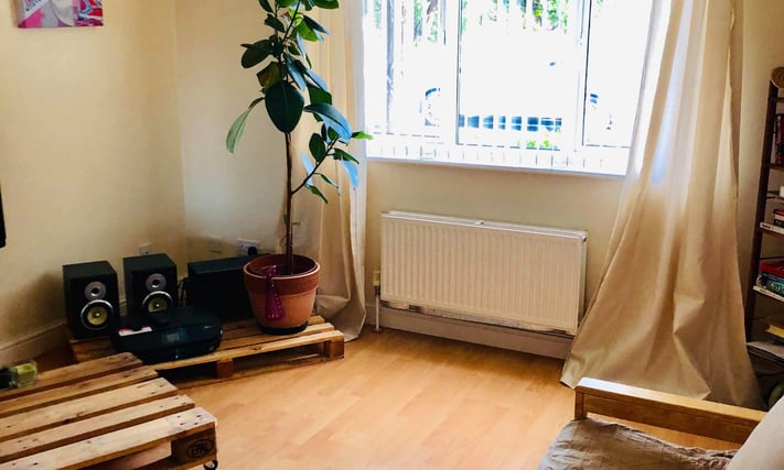 Ground floor entrance. Semi-furnished with all kitchen appliances, washing machine, fridge freezer, microwave, electric cooker & small table chairs. The living room is a medium sized room with a sofa bed and basic furniture; coffee table, storage shelves and TV. The medium sized bedroom has a double bed within and built in wardrobe. Bathroom is a good size, with a WC, sink, bath and shower. Within the flat it’s central heating and double glazed windows. Non Smoker, Professional, Mature Student.
