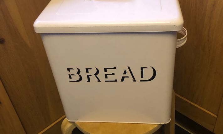 Pink enamel breadbin with lid and side handles good condition £10 Email Me
