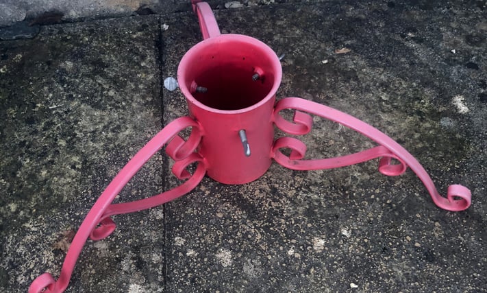 Xmas tree stand red metal stand 10cm diameter complete with its 4 adjustable screw fixings good condition £10 collect or can try to deliver Email Me