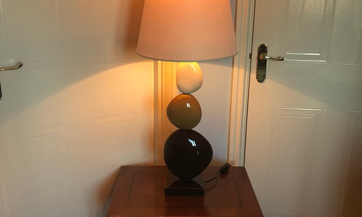 Attractive Table lamp size 98cm tall with shade and energy bulb hand remote switch has been electrically tested good working condition £20 collect or can try and deliver Email Me