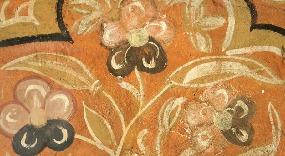 Through a series of accidents the paintings of flowers on these walls (probably painted between 1564 and 1581) were preserved behind panelling, to be revealed in 1927. Fortunately their importance was recognised, and they were safely preserved, for Oxford Preservation Trust to rediscover and restore. OPT now open up the room whenever possible, especially around the Open Doors festival in September, and Shakespeare's Birthday in April.