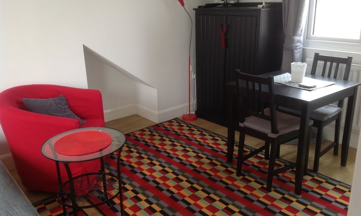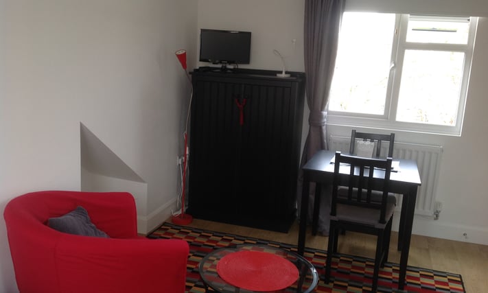 Large loft room for single occupancy only, with sitting and dining area, kitchenette, private bathroom, TV, broadband, central heating. All bills included. Available from early May. One month deposit. Minimum stay preferred one year. Quiet household, suitable for serious professional or mature student. References required. Non-smoking. House washing machine facility. Garden. Bike access. Friendly cat lives in the house. Location opposite park. This is not a house shared. Live in retired owner.